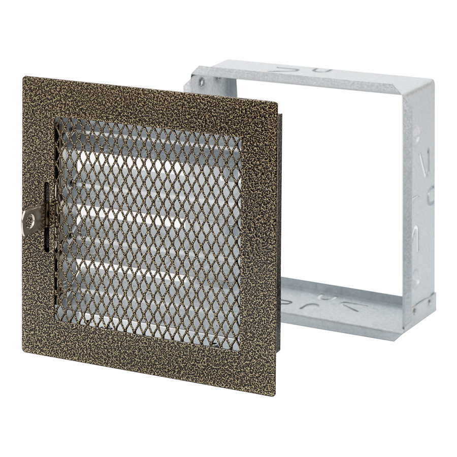 grille fireplace, 150x150mm, with a frame and a mesh, antique gold