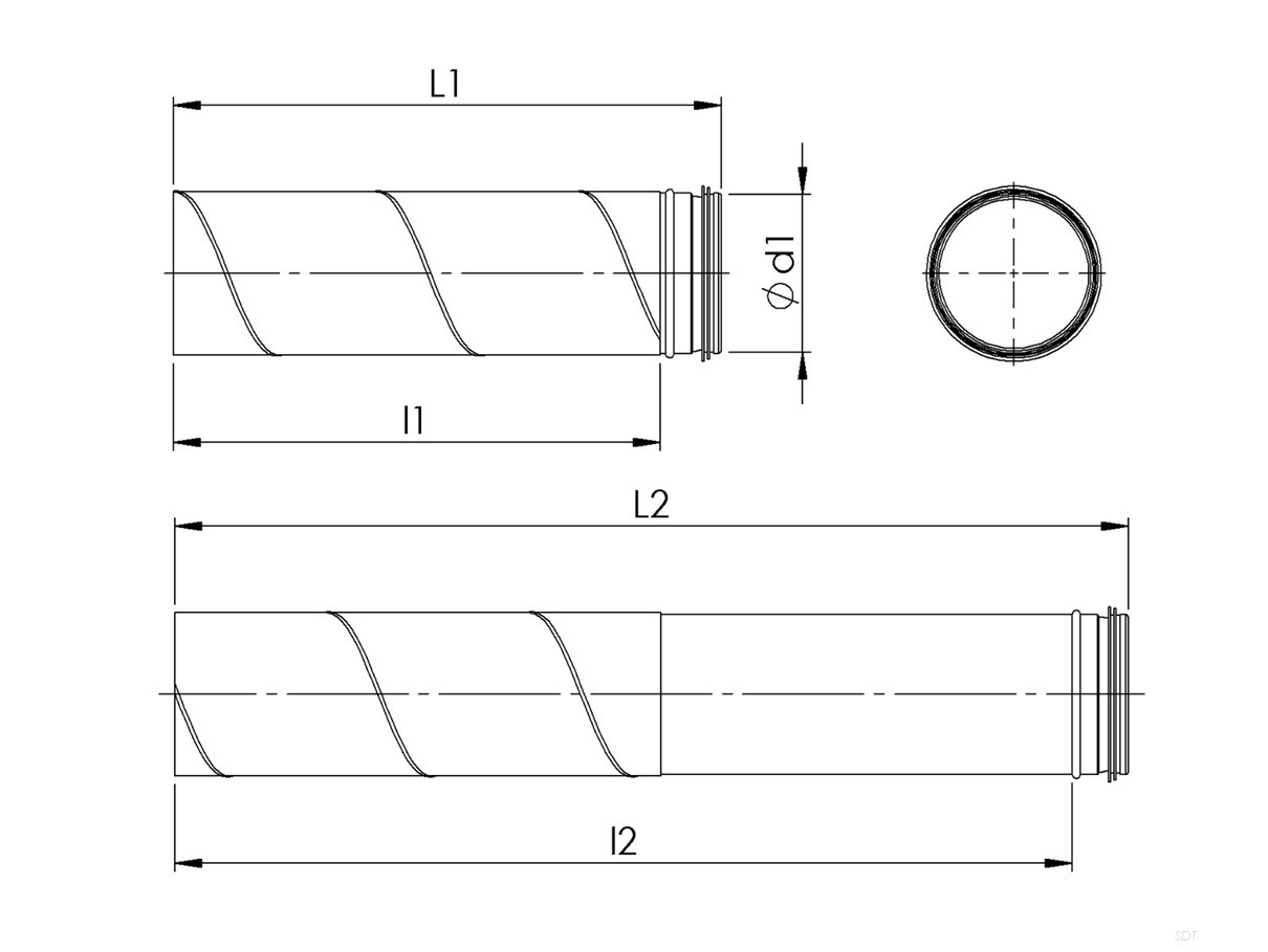Metal telescopic spiral air duct with male female type end connections. Quick and easy installation and modification. SDT round telescopic spiral air ducts are used for supply and exhaust vents of public, residential and industrial ventilation systems.